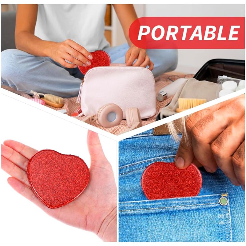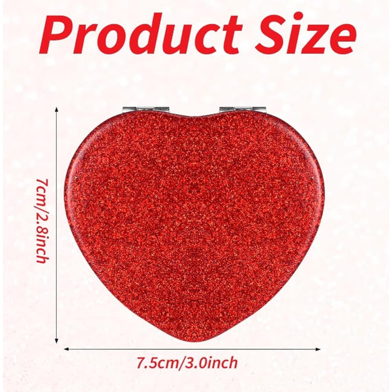 mpowtech Cute Heart Shaped Compact Mirror for Purse,Red Travel Mirror with Glitter,Leather Small Pocket Mirror,Portable 2 x 1x Magnification Folding Makeup Mirror,Cosmetic Mirror for Gift