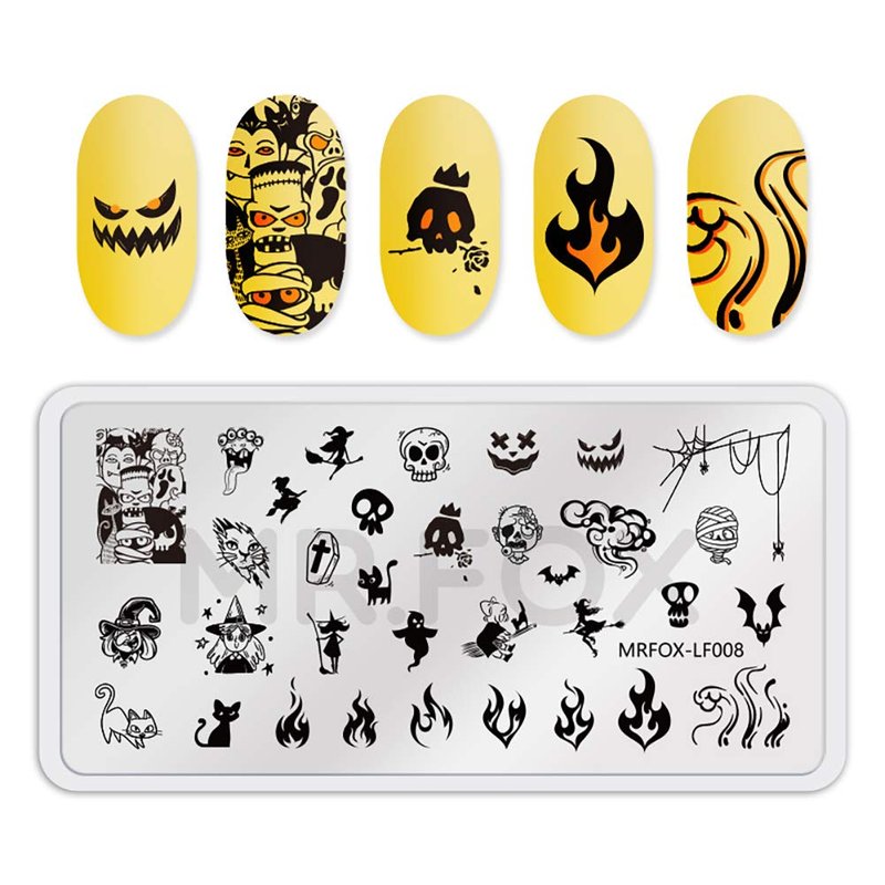 Mr. Fox Nail Printing Board Set Halloween Flame Leopard, Zebra and Snake Motifs Nail Art DIY Stamping Template