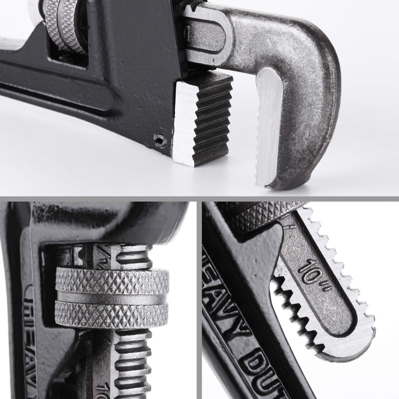 - The wrench features an adjustable jaw design that allows for swift adjustments between various pipe sizes, maximizing convenience and versatility in different job scenarios.