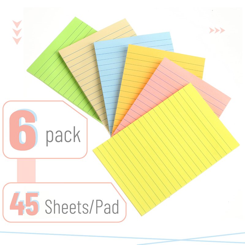 - Each pad measures 4" x 6". Vibrant lined sticky notes are always helpful when you need to capture great ideas.
