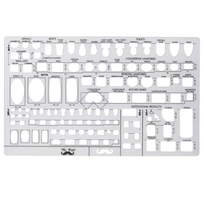 Mr. Pen Plumbing template set is designed for architects, builders, contactors and … to help them complete their Lavatory planning with exceptional accuracy and ease.