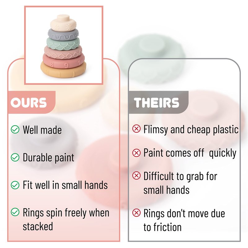 - Mr. Pen stacking rings toy is easy for little hands to grasp and play with, promoting independence and confidence in their abilities. It's a perfect toy for individual play or to share with friends.