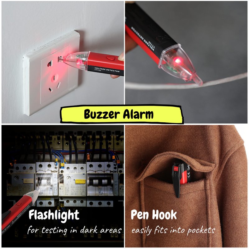 - Insulation operation ensures the safety of testing. You can use this non-contact AC voltage detection to check whether a cable, wire or socket contains AC voltage.
