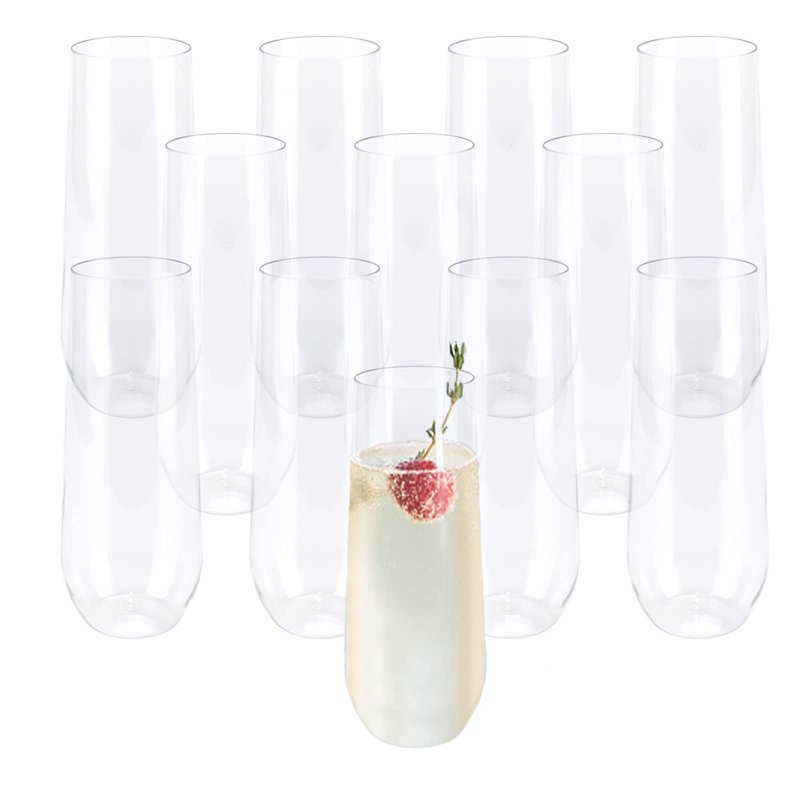 - Small demand packaging. 12 pieces of 9 oz plastic champagne flutes are available, and the small package is suitable for your small party. You don't need to spend a lot of money to buy plastic cups you don't need, and it takes up too much space.