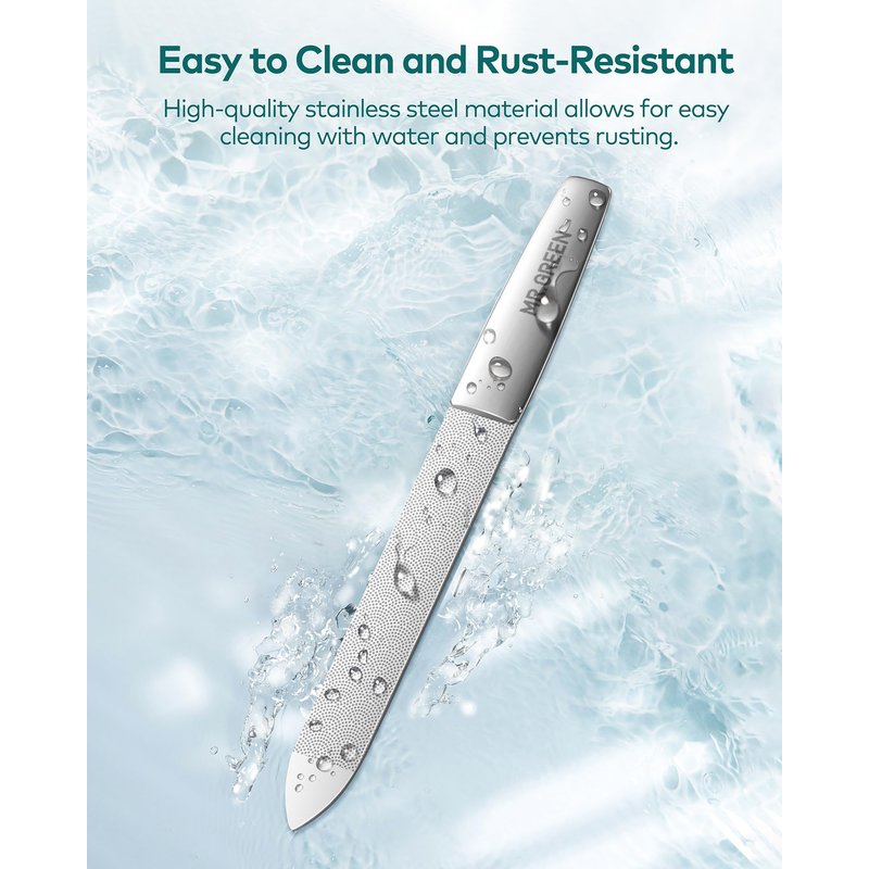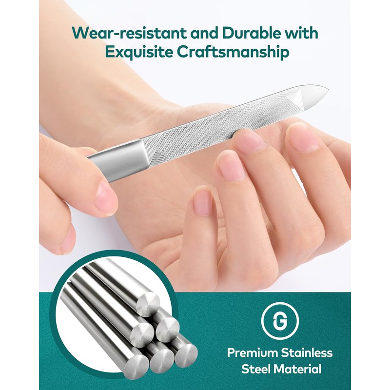 - 【High Quality Material】Professional nail file is made of Japanese medical grade 420j2 stainless steel, which is strong and durable, waterproof and rustproof. Surface mirror polishing process, easy to clean, long product life.