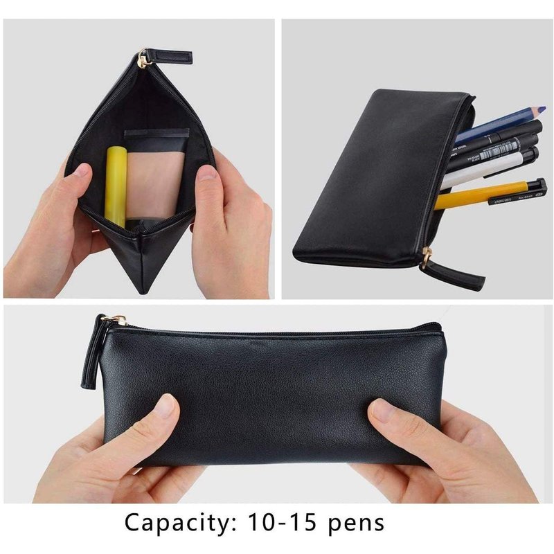 - PREMIUM MATERIAL -- It is made of PU waterproof material to protect the things inside offering a comfortable touching feel and keep your stationaries from dust, scratches, and bumps with 7.3 x 3.2 x 0.2-inch size.