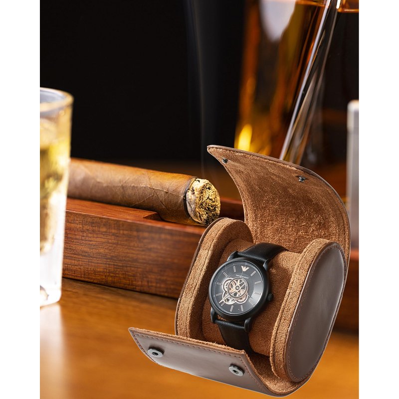 Mr.Okay Single Watch Travel Case -Classic Leather Watch Case With Perfect Texture.(Watch Carrying Case Or Organizer For Storage And Display).Mens Watch Case for Travel Handcrafted by Craftsmen.
