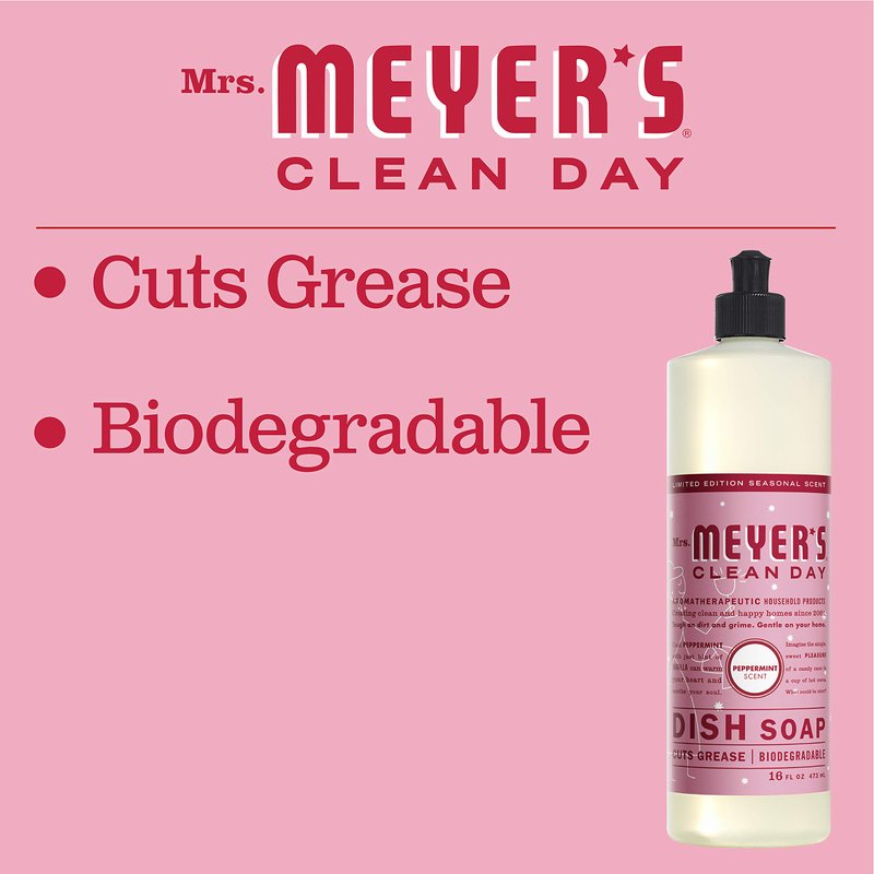 MRS. MEYER'S CLEAN DAY Liquid Dish Soap, Biodegradable Formula, Limited Edition Peppermint, 16 fl. oz
