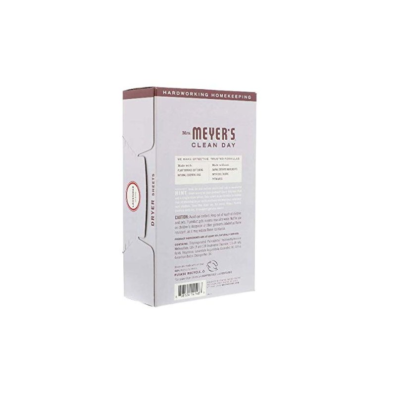 Meyer's Clean Day lavender dryer sheets reduce static, soften and add a bit of garden-freshness. Our dryer sheets contain a vegetable-derived softening agent and natural essential oils on a new biodegradable paper sheet.