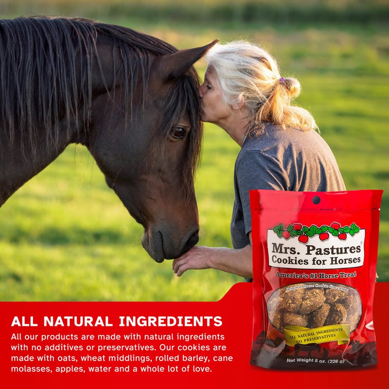 - Made with all-natural, simple ingredients, Mrs. Pastures horse cookies were made to help nourish the human-horse bond. Originally designed with picky eaters in mind, try using them in your next training session — these special snacks have helped improve ground manners, trailer loading, mounting block patience and more!