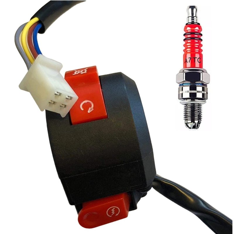 MRS TAOTAO Left Kill Start Stop Switch with 4 Wires Connector for TAOTAO 110cc 125cc ATV Quad/Boulder B1 ATA 110B TFORCE Cheetah ATA 125D New Cheetah New TFORCE Models - OEM + Spark Plug