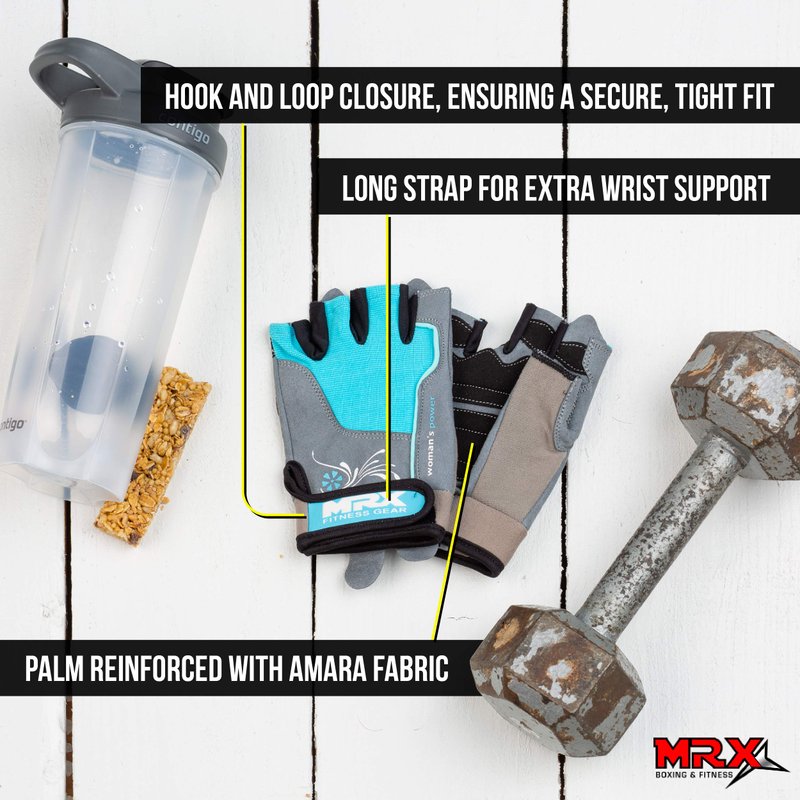 MRX BOXING & FITNESS Weight Lifting/Exercise Grip Gloves for Women, Great for Workouts, Weight Training and More, Sky Blue Medium