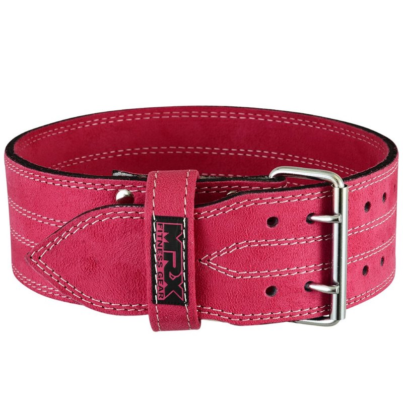 MRX Powerlifting Leather Belt 4" Wide 10mm Thickness Training Fitness Back Support Bodybuilding Belts with Steel 2 Prong Buckle Pink (Small)