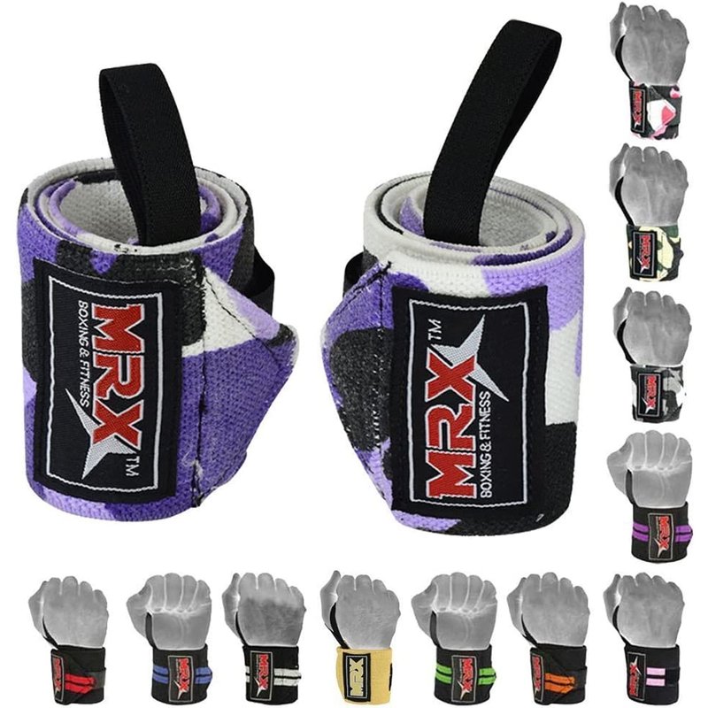 MRX Weight Lifting GYM Training Wrist Wraps For Wrist Support Bodybuilding Workout Wrap Men/Women (Camo Purple)