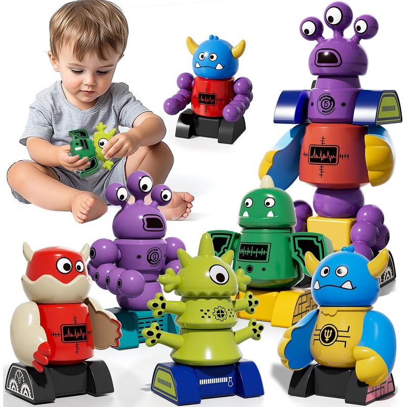 MSKOLER Magnet Robot Toy for 3 4 5 6 7 Years Old Boys - Monster Magnet Stacking Transform Toy for Kids with Storage Box, Gifts 3 4 5 Year Old Boy, Magnet Boy Toy Robot Toy for Kids 2-4 3-5