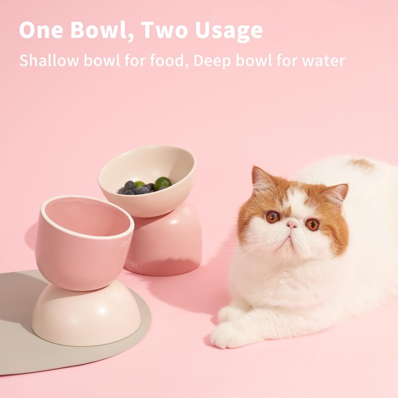 - 😽 [Ergonomic Design] - The MS Cat Bowl is uniquely designed with a 20° tilt and raised 3.9in to help alleviate your cat's spine burden and relieve whisker fatigue, effectively reduces vomiting or discomfort while cats eat, making it more comfortable for your furry friend to eat