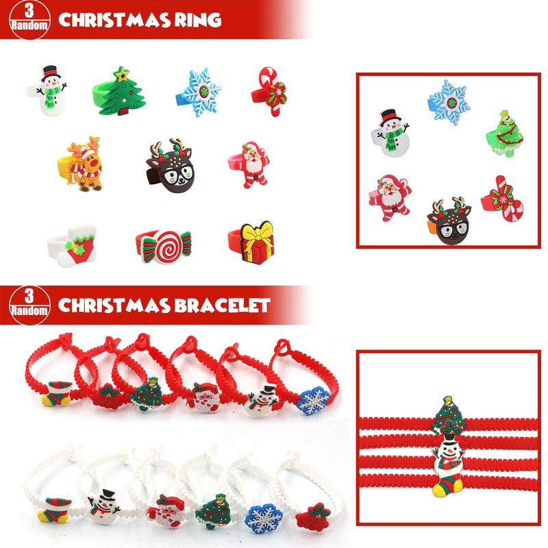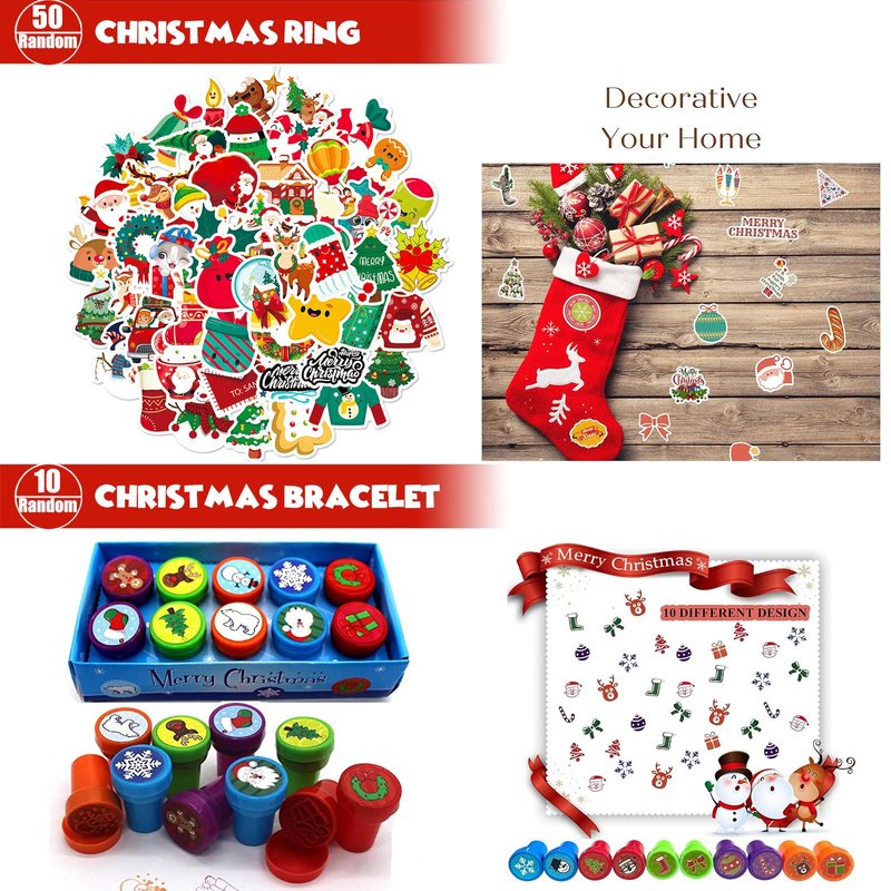 Assortment Premium Christmas toys,10 various 96pcs include:10 pcs stamps,4 Pop it Keychain,1 Pop it Shoulder bag,50 Christmas Stickers,3 Christmas ring,3pcs Christmas bracelets,4 Pcs Christmas tumblers,3Pcs pinball game toys,6 Pcs mochi squishy animals,12 pcs Christmas Slap Bracelets,3Pcs pinball game toys total 96 pcs. This set are Premium various Party Favors. Enough to excite 5-10 children,You can receive 10 various 96pcs Christmas party favor toys in a colorful box. Suitable for playing fun with sister, cousin, friends. Perfect for your kids Christmas.