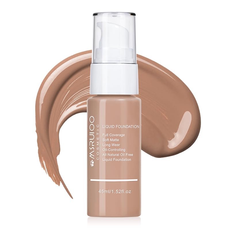 MSRUIOO Liquid Foundation, Matte Finish, Weightless Full Coverage, Oil-Free, Non-Comedogenic, 1.52 fl oz (M004, 1pc)
