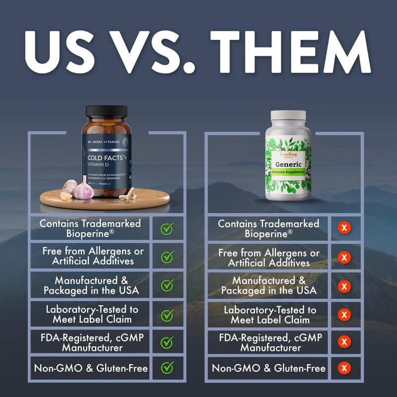 Mt. Angel Vitamins - Cold Facts + Vitamin D, Immune System Support (60 Vegetarian Capsules)