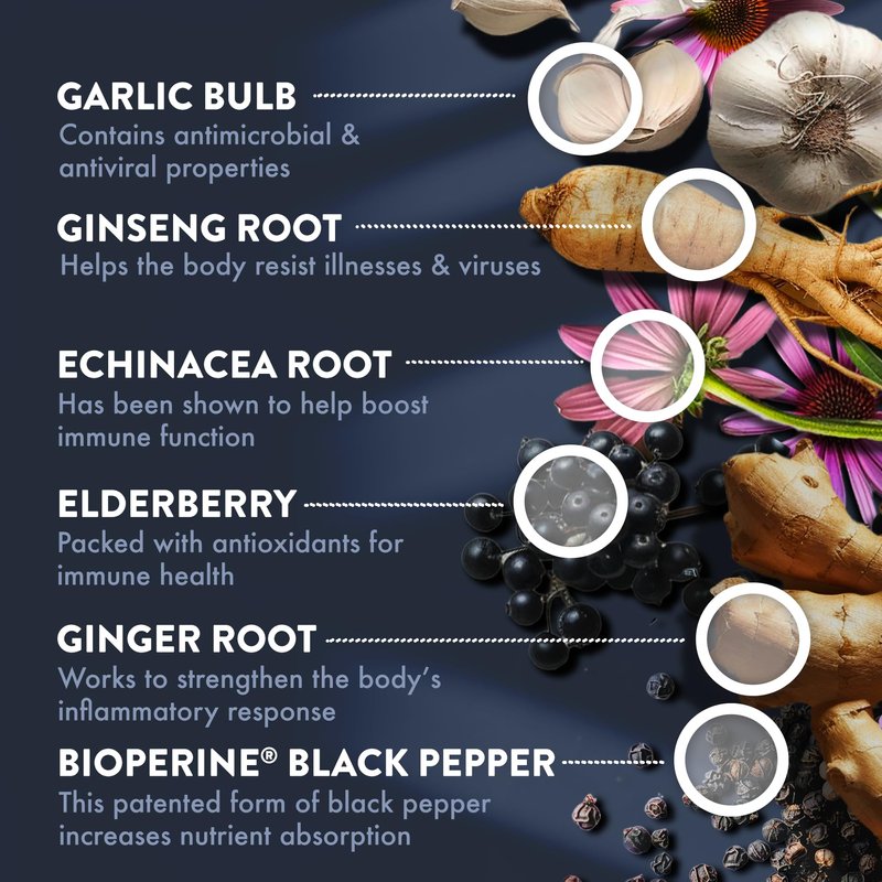 - INCREASES RESISTANCE TO PHYSICAL AND EMOTIONAL STRESS: Garlic Bulb enhances immune cell function. American Ginseng was used traditionally as an adaptogen, to naturally increase the body's resistance to physical and emotional stress. American ginseng promotes immune function by stimulating macrophag