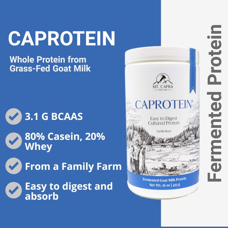 MT. CAPRA SINCE 1928 Caprotein | Casein Protein Concentrate, Fermented Goat Milk Protein from Grass-Fed Pastured Goats, Extremely Easy to Digest - 1 Pound