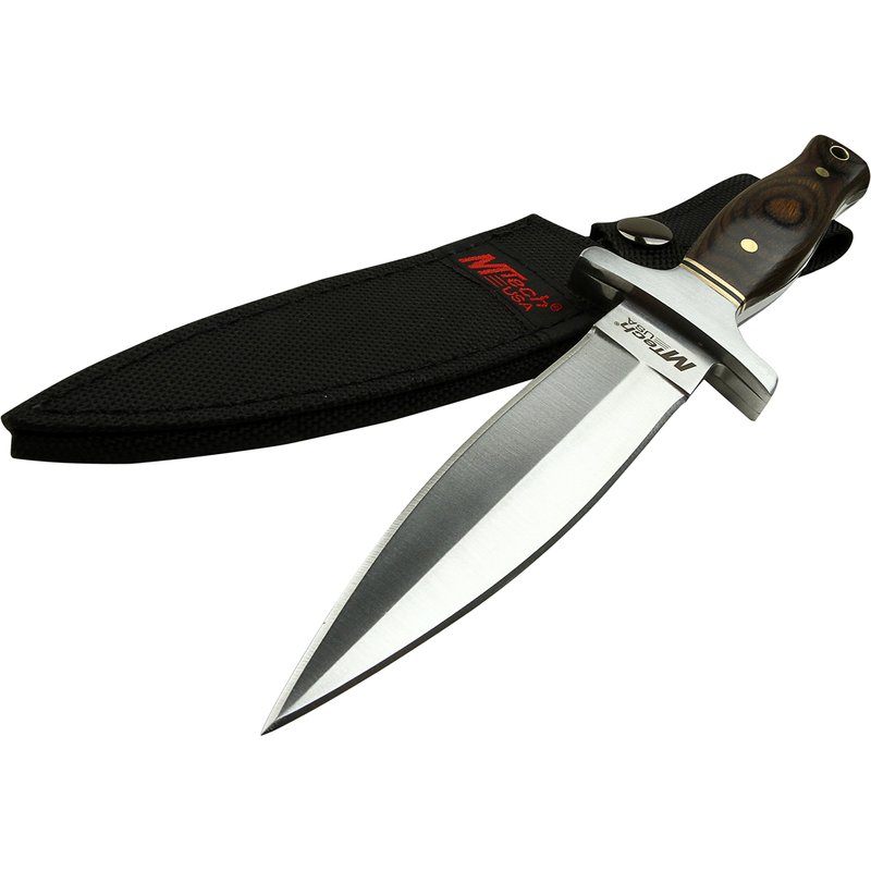 MTech USA – Fixed Blade Knife – Satin Finish Stainless Steel Blade, Brown Wood Handle with Stainless Steel Bolster, Includes Nylon Sheath - Hunting, Camping, Survival, Tactical – MT-20-03