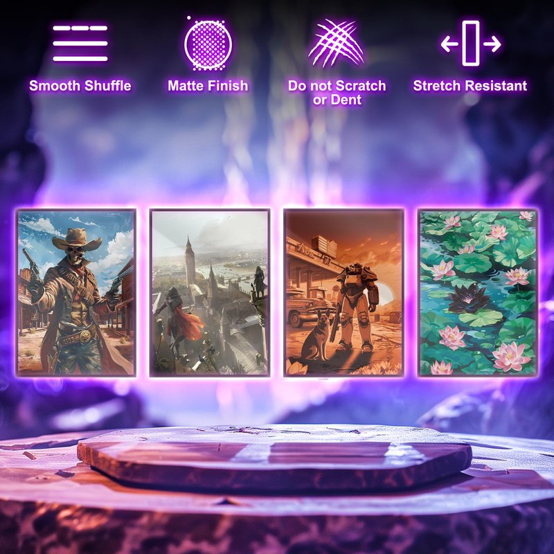 - Gloss Front & Matte Back. You can clearly read the card descreption, Unobstructed. Fully Opaque and smooth back for better shuffle feel.