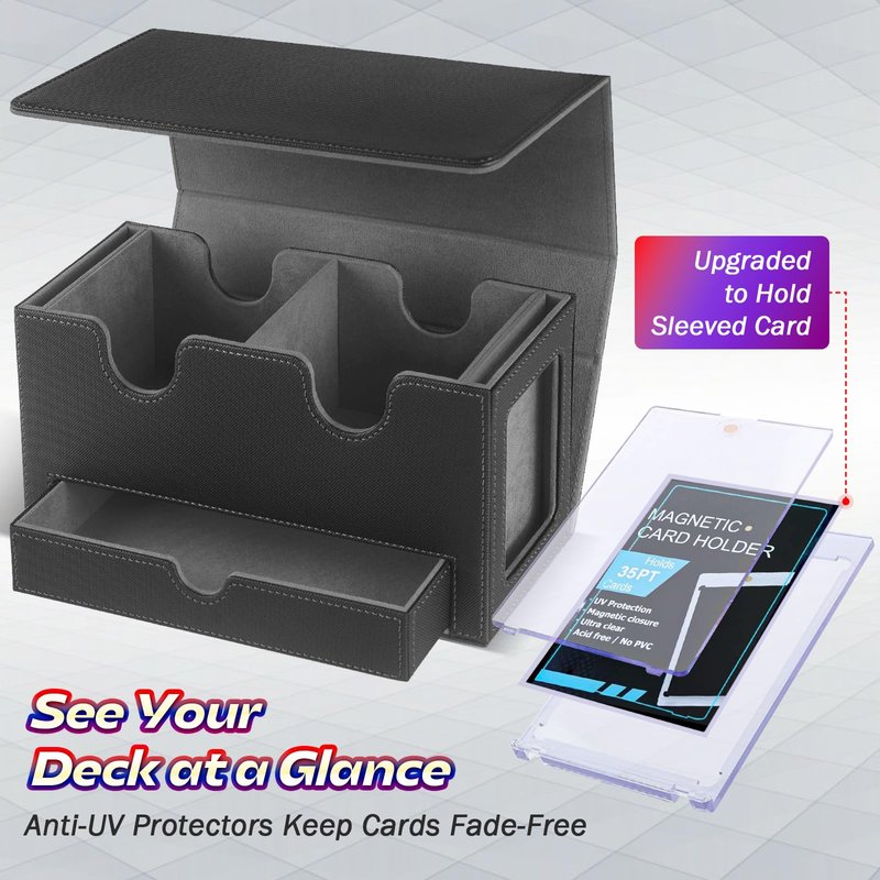 - 【Enhanced Accessories】2 Anti-UV upgraded card protectors can hold sleeved cards, enhancing security and preserving your flagship card in impeccable condition for years to come. 4 additional dividers allow you to categorize your cards with precision and keep them impeccably tidy.