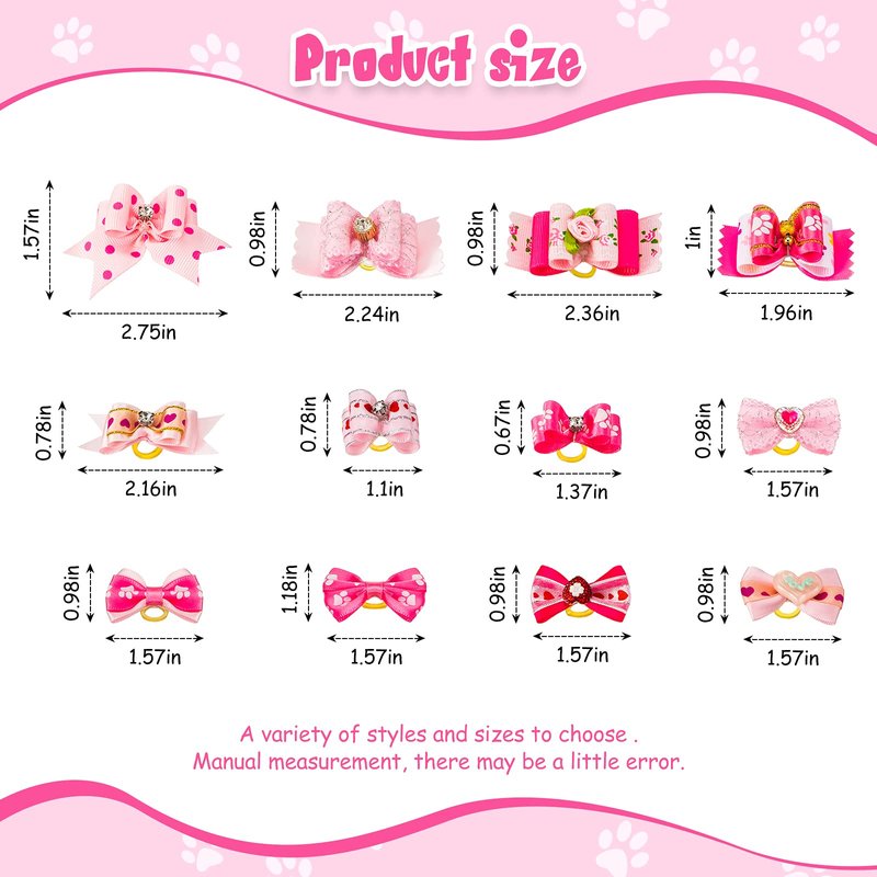 - Adorable pet headdress: these pet bows are in the pink series color, properly matching various pet accessories and costumes; Mainly made of polyester fiber, the puppies hair bows with elastic rubber bands and rhinestones are some lovely pet hair decorations