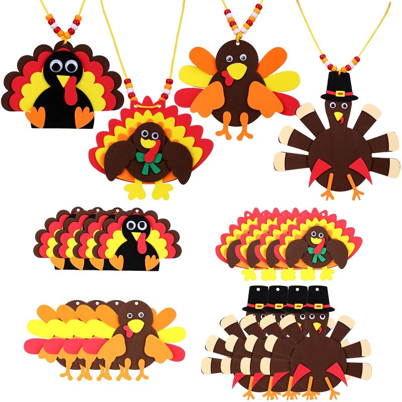 - What you get: the package includes 12 sets of foam turkey necklace craft kit, 200 pieces of multicolor beads and 20 meters threads, enough amounts for you to DIY with your friends and families, enrich your spare time and bring you more fun