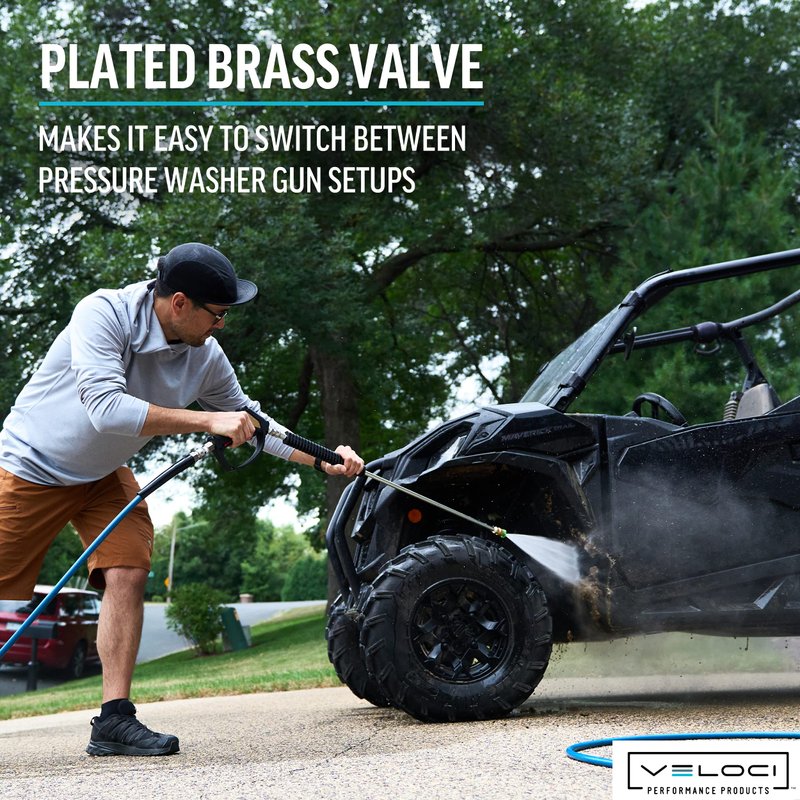 - EASY SWITCHING - Power washing valve commonly found at the base of the high pressure washer gun. Enables quick shut off to switch between pressure washing guns without turning off the entire system.