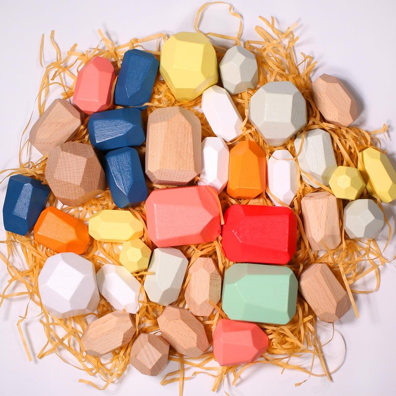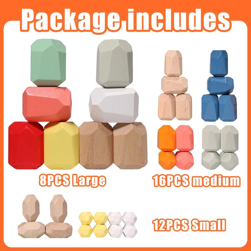 - 36 PCS Wooden Stacking Stones Toys -This set of stacking rocks comes in various sizes, shapes, and colors, engaging children in a fun and creative stacking game. It is a perfect building blocks for toddlers 3-5