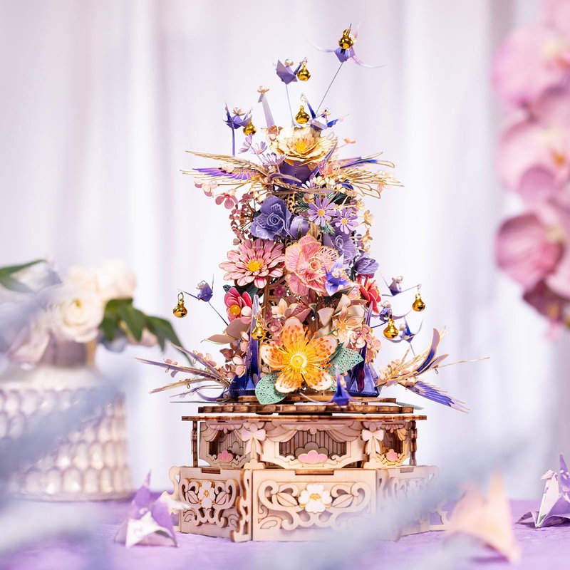 - 【About the music box】3D flowers wooden puzzle crafts for adults are with 360 degree rotating music box. Music box BGM: Sky city.