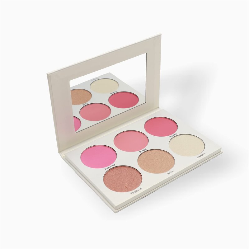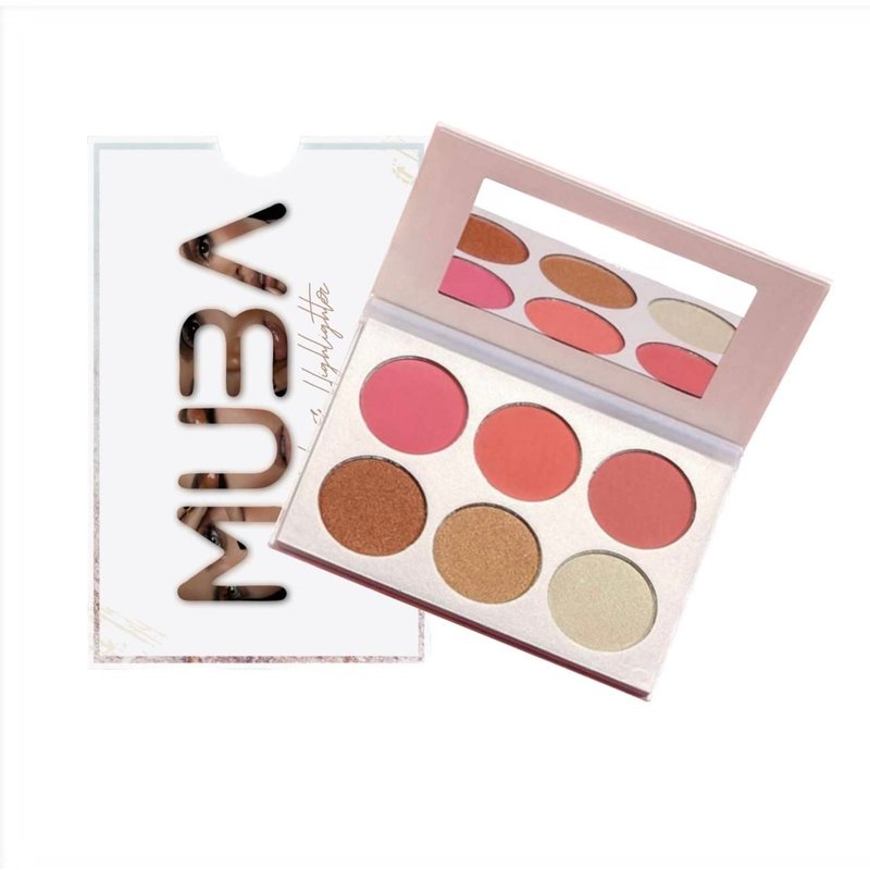 MUBA COSMETICS Universal Blush and Highlighter Palette-Face Makeup Set- 3-Highlighter Powder & 3- Blush Powder Shades- Face Highlighter & Powder Blush Palette - Powder Highlighter