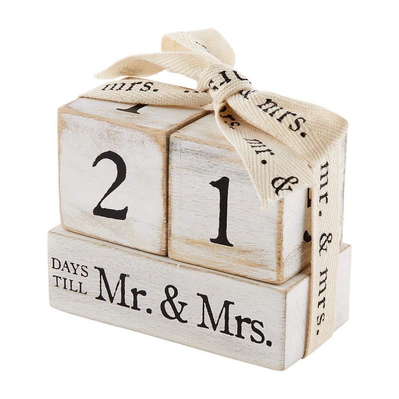 - 3-piece set. White-washed mango wood blocks turn to count down the "days til Mr. & Mrs."