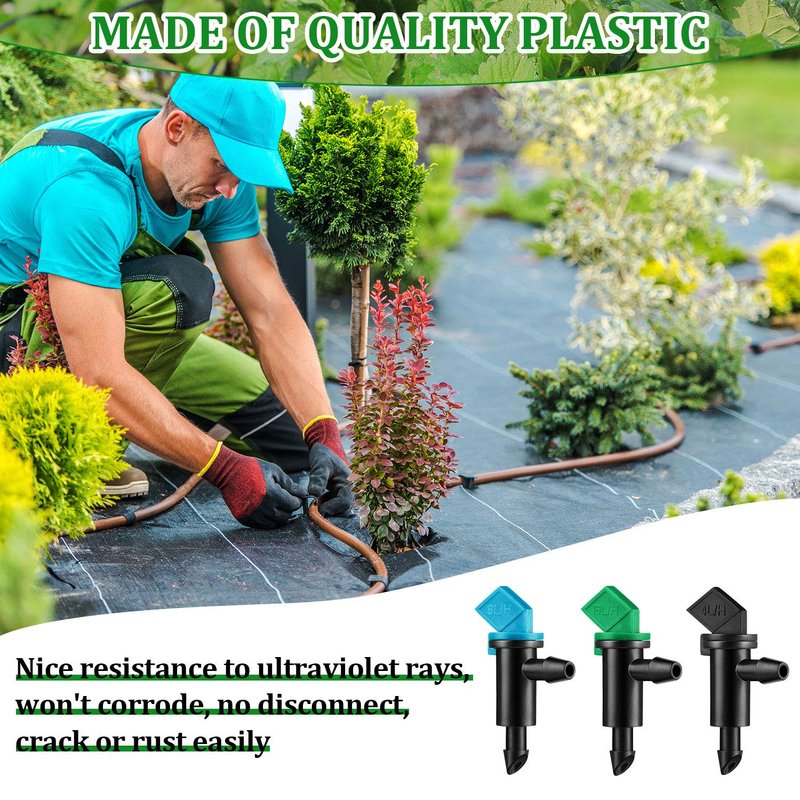 - Quantity and size: 60 pieces of irrigation flag drippers in 3 different sizes, each size is with 20 pieces, 1 gallon per hour in black, 2 gallon per hour in blue and 4 gallon per hour in green, the lid color of each size is different, and different droppers work well in controlling the water flow of different soils, convenient for you to manage plants of different habits