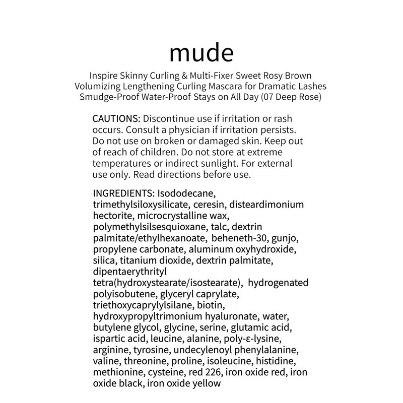 mude Inspire Skinny Curling & Multi-Fixer Sweet Rosy Brown Volumizing Curling Mascara for Dramatic Lashes Smudge-Proof Water-Proof Stays on All Day (07 Deep Rose)