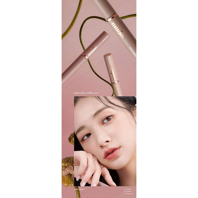 mude Inspire Skinny Curling & Multi-Fixer Volumizing Lengthening Curling Mascara for Dramatic Lashes Smudge-Proof Water-Proof Stays on All Day (02 Brown)