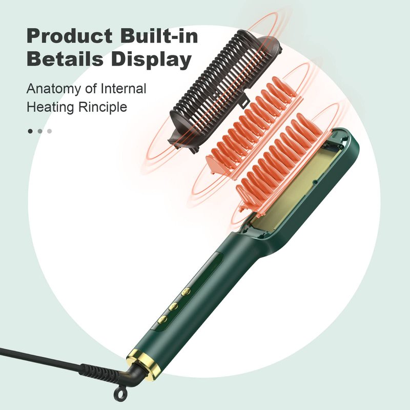 - 【Negative Ion Hair Straightening Brush】Negative ions are called "air vitamins" and are beneficial to the human body. This hair straightening comb is a bilateral negative ion hair straightening comb. A full range of negative ion jets are injected into your hair, deeply repairing damaged hair and split ends, making your hair plump and restorative. Wouldn't you want to try a straightening comb that can both straighten and condition your hair?