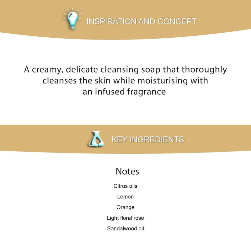 - Muelhens possesses a blend of citrus oils, lemon, orange, light floral rose, sandalwood oil