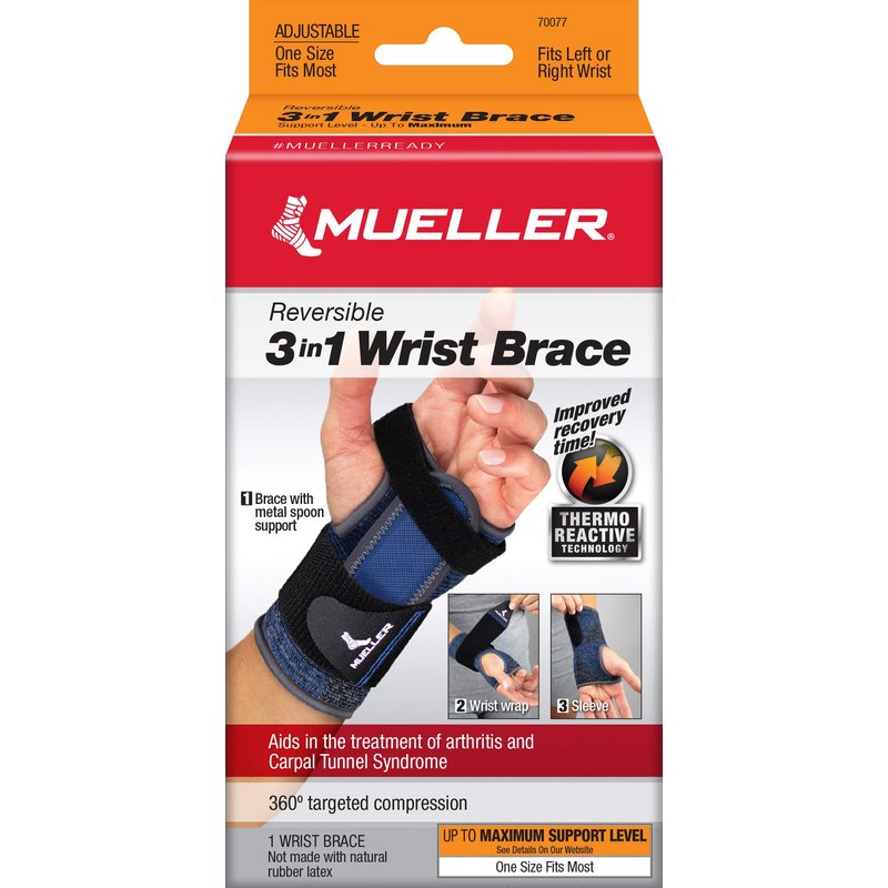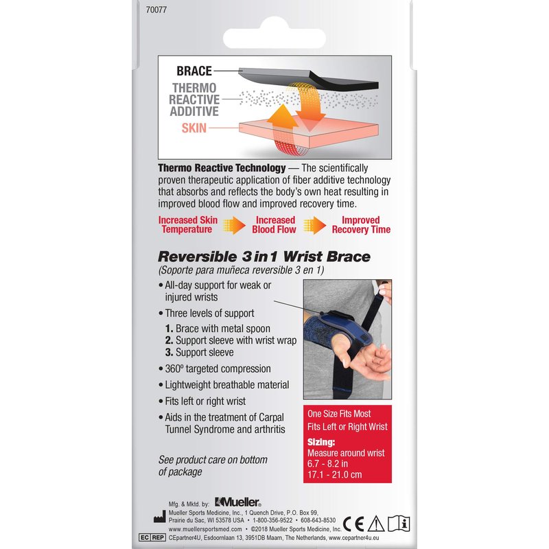 MUELLER Sports Medicine Reversible 3-in-1 Wrist Brace with Splint, For Men and Women, Black/Blue, One Size
