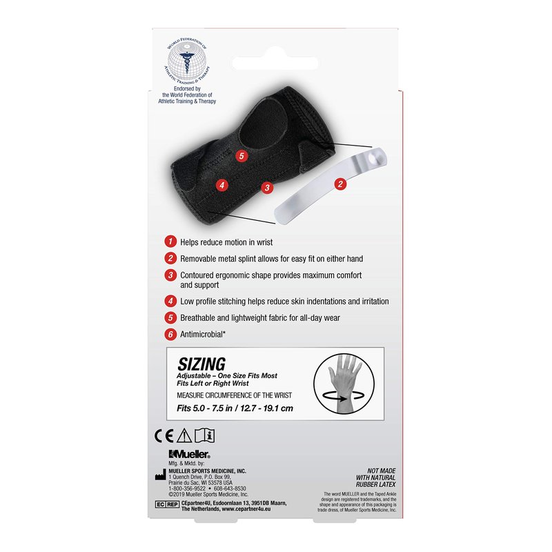 MUELLER Sports Medicine Reversible Wrist Brace with Splint, for Men and Women, Black, One Size