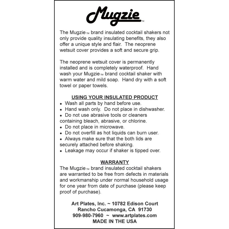 - 16 Oz Stainless Steel Cocktail Shaker covered with water-proof, neoprene wetsuit material No more cold and wet hands