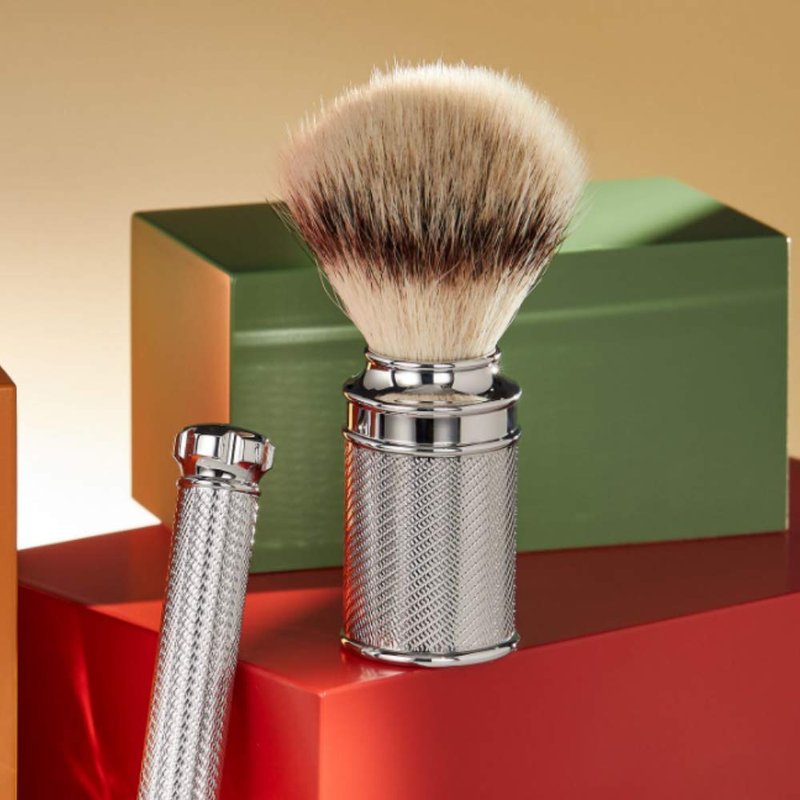 - USE: Wet the brush under warm water. Next, place shaving soap or cream into a bowl or cup and dab your desired amount onto the brush, proceeding to gently work it into a lather on the skin. Use a MÜHLE razor for a clean shave, rinse, and repeat.