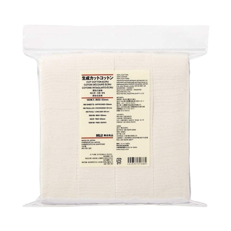MUJI Makeup Facial Soft Cut Cotton Unbleached 60x50 mm 180pcs
