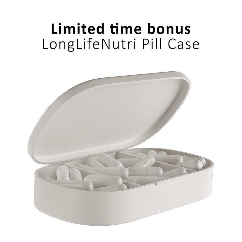 Order today and receive an exclusive LongLifeNutri Pill Case to keep your supplements secure and organized.