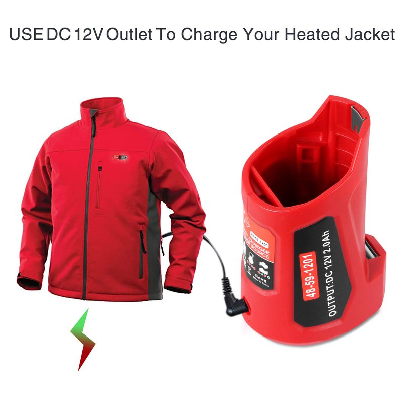- 【Multifunction】Built-in USB and DC interface | 2.1A powered USB port charges all 5V / 12V mobile devices. (Includes phone/tablet...) | DC 12V 3A socket, battery works with Milwaukeeheated jacket.