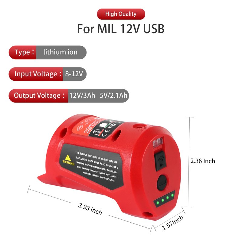 【Multi-Function】 CaliHutt 12V USB Power Charger Adapter Replacement for Milwaukee m12 12V Battery Adapter Milwaukee Heated Jacket 49-24-2310 48-59-1201 Compatible with 48-11-2420 48-11-2411 48-11-2401