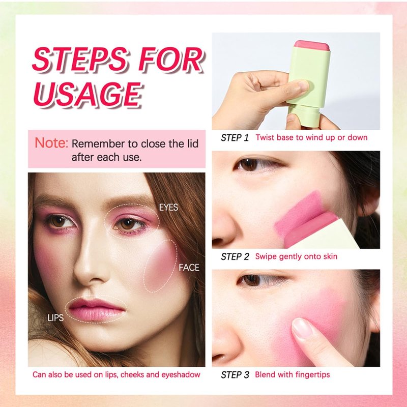 - The multi-use makeup blush stick allows you to easily apply and touch up makeup.It can also be used as eye shadow and lipstick