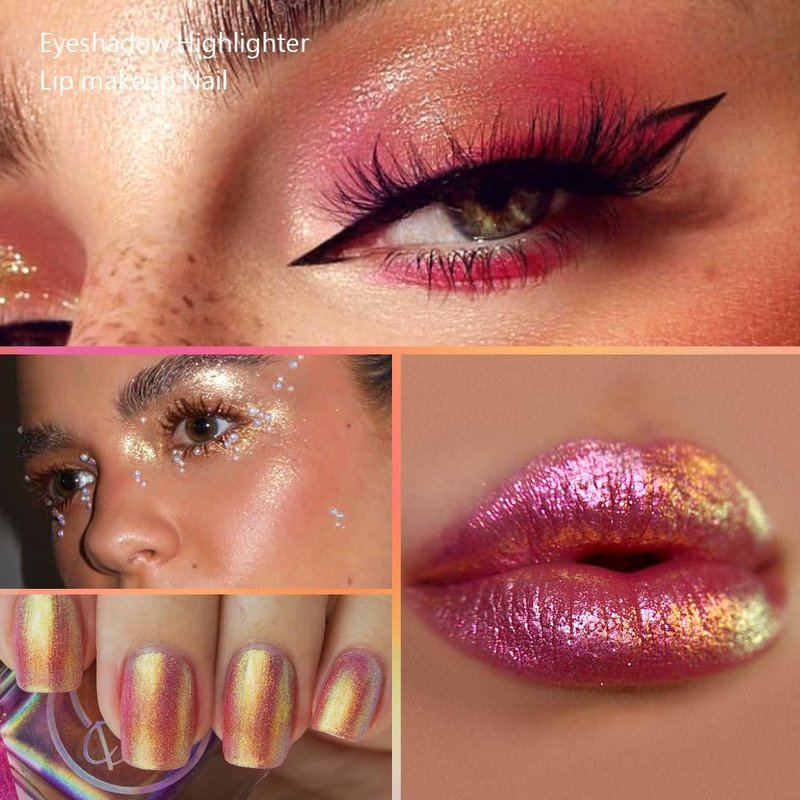 - Intense Color Shifting: This multichrome metallic glitter eyeshadow features high impact multi-colors shift eye looks that will instantly elevate your makeup game. The shades shift from pink to gold to green to yellow, creating a mesmerizing effect on your eyes.